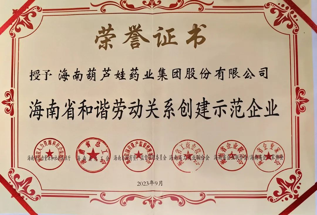 CA88药业集团获评“海南省和谐劳动关系创建示范企业”